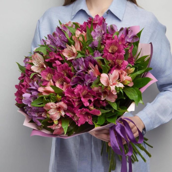 Недорогой, красивый, букет из разных цветов альстромерии с доставкой до двери
