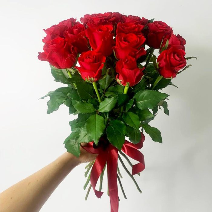 троянда червона – 19 шт. стрічка – 1 шт.