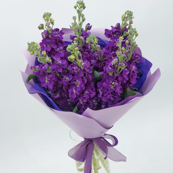 Яркая, ароматнейшая маттиола напомнит о тёплых летних деньках. Такой букет всегда уместен и подойдёт для любого повода: День Рождения, именины, годовщина свадьбы, рождение ребенка, 8 марта, День Святого Валентина, выпускной и т.д. Можно вручить маме, сестре, подруге, коллеге, учителю, любимой.