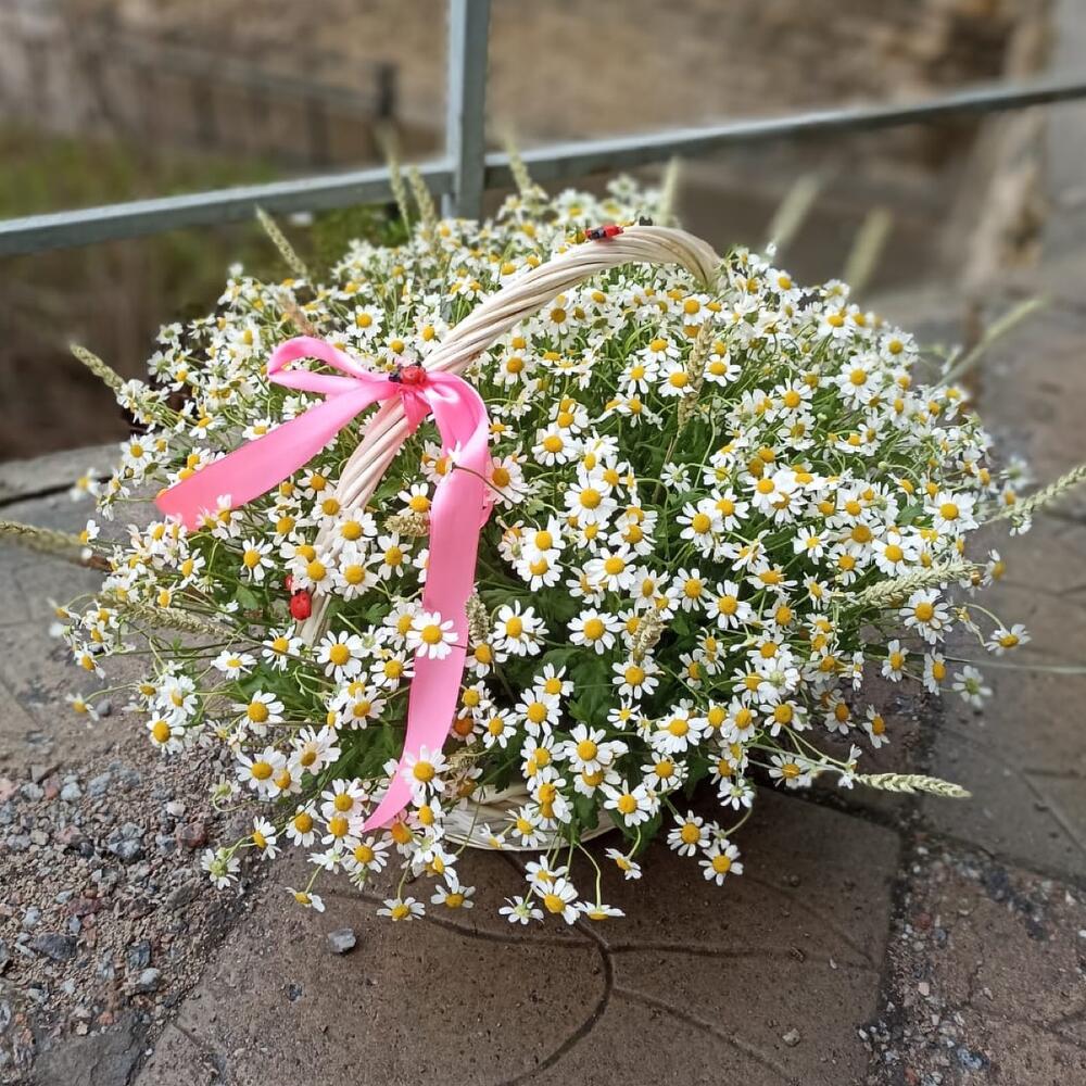 Корзина с ромашкой матрикария