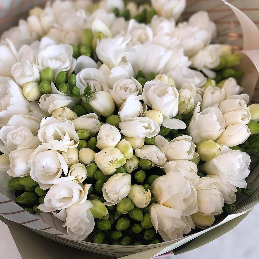 Фрезия – 49 шт.Упаковка крафт – 1 шт.Лента атласная – 1 шт.