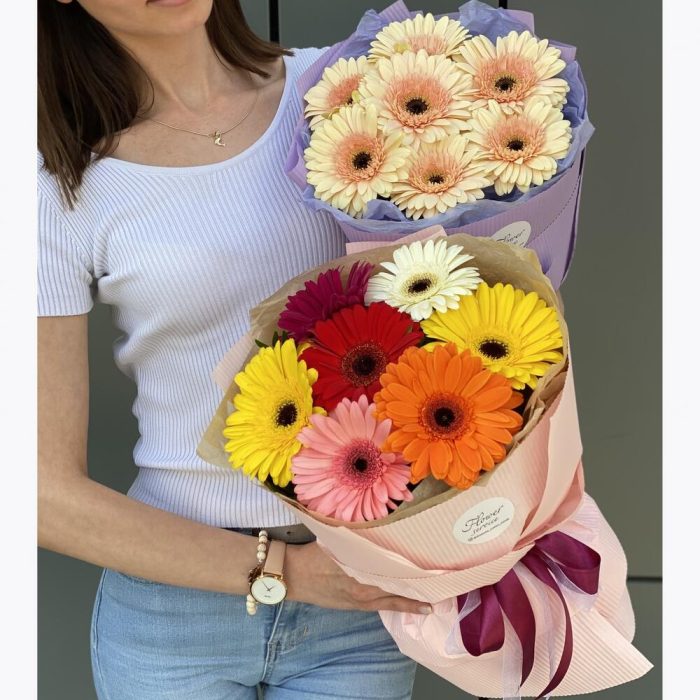 Писташ – 1 шт. Гербера – 7 шт. Оформление – 1 шт.