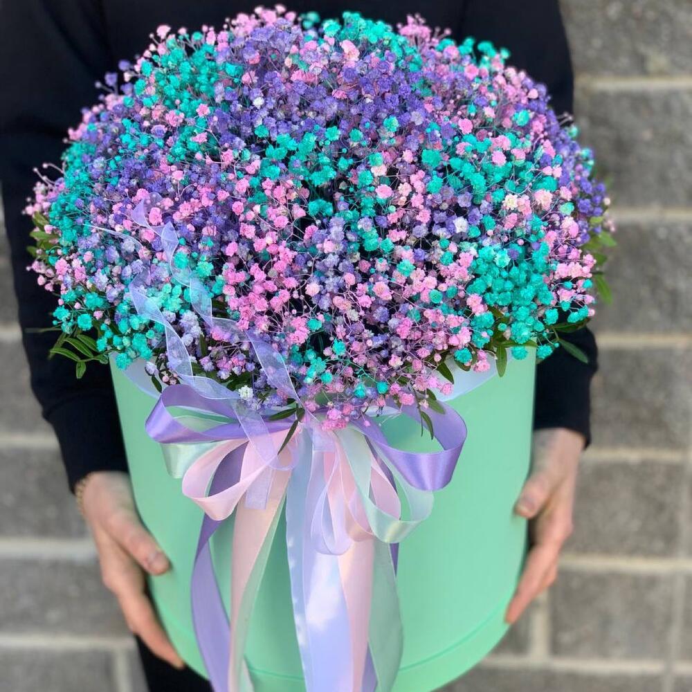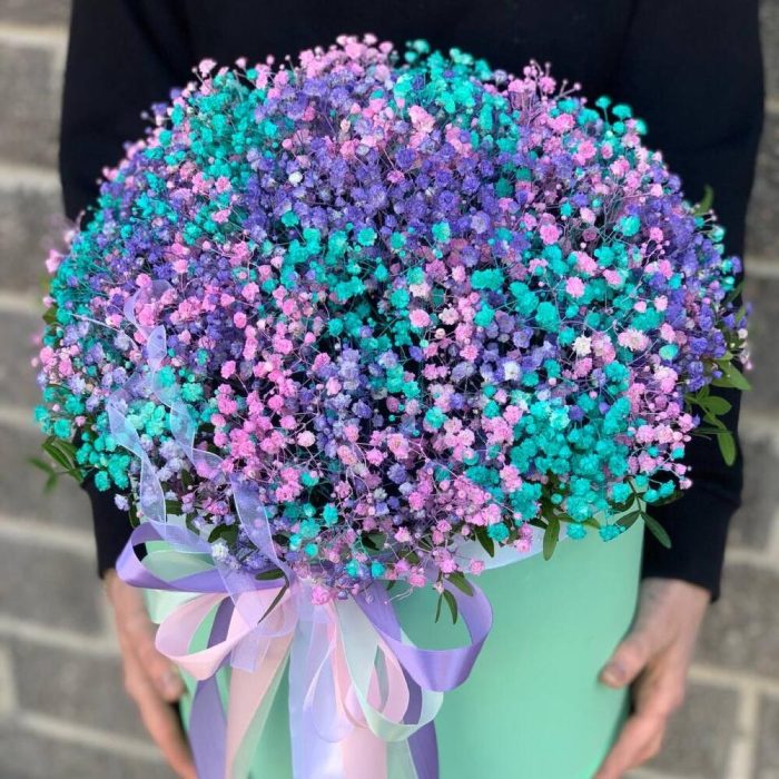 Гипсофила – 11 шт.Оазис флористический – 2 шт.Коробка шляпная – 1 шт.Лента атласная – 2 шт.