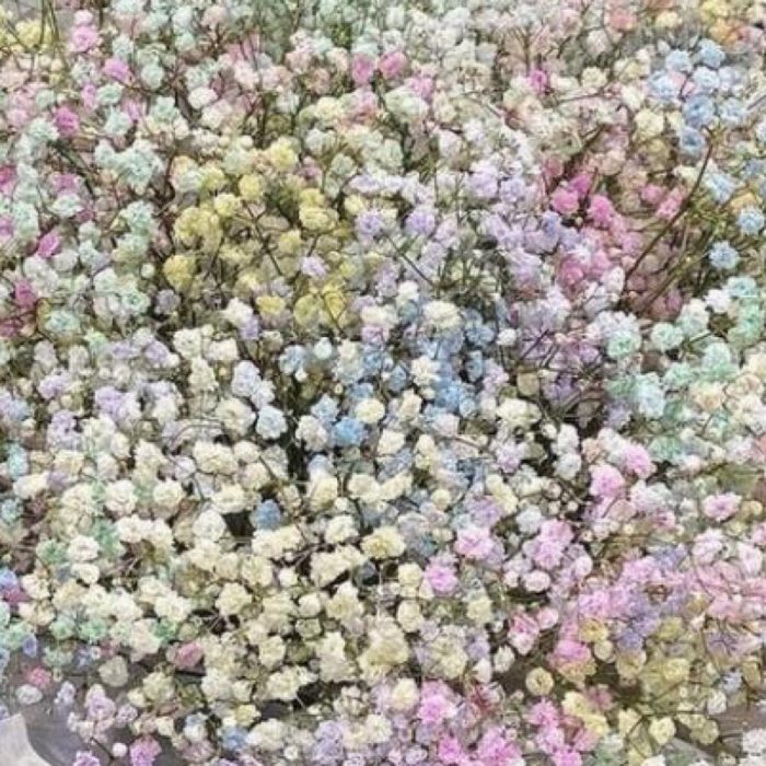 гипсофила радужная – 35 шт.Упаковка дизайнерская – 2 шт.Лента атласная – 2 шт.Открыточка с вашими пожеланиями – 1 шт.хорошее настроение – 100 шт.инструкция по уходу за цветами – 1 шт.коробка переноска – 1 шт.Кризал – 1 шт.