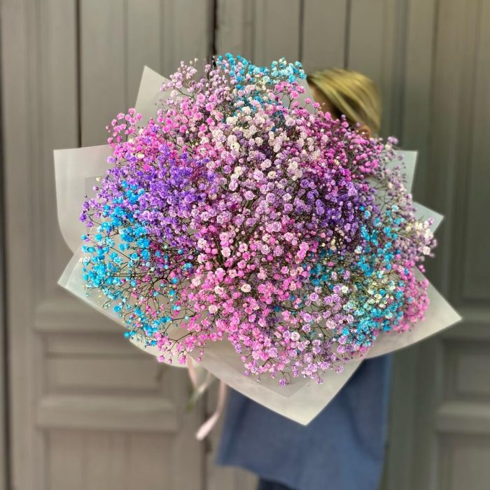 Гипсофила – 15 шт.Лента атласная – 1 шт.Упаковка дизайнерская – 4 шт.