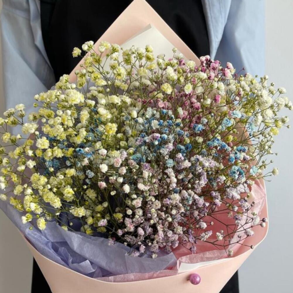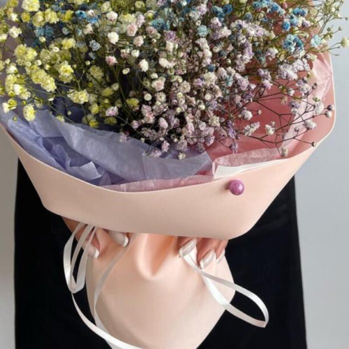 Лента атласная – 2 шт.Тишью – 2 шт.Фоамиран – 1 шт.гипсофила радужная – 3 шт.
