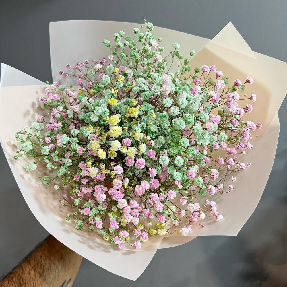 Гипсофила – 5 шт. Открыточка с вашими пожеланиями – 1 шт. Дизайнерская упаковка – 1 шт.