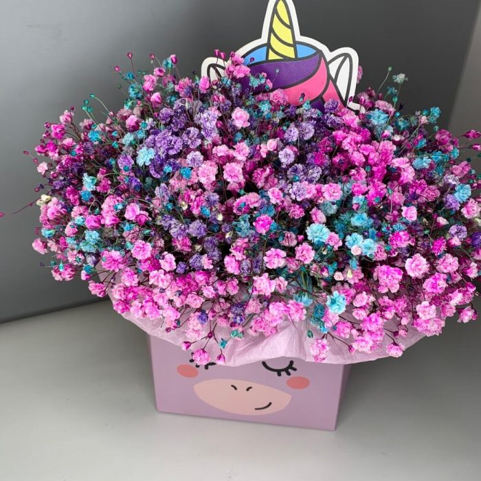 Красочная Гипсофила в коробке Единорог