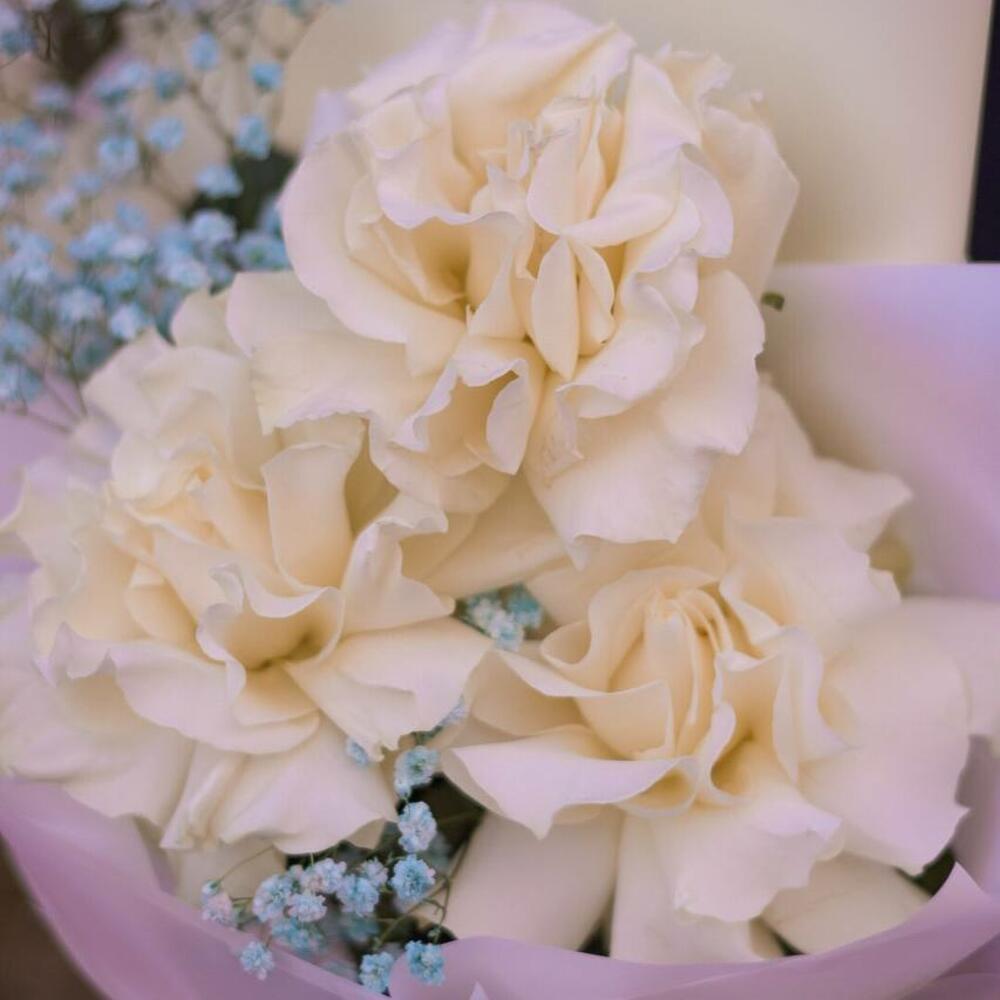 французские розы – 3 шт.Гипсофила – 1 шт.