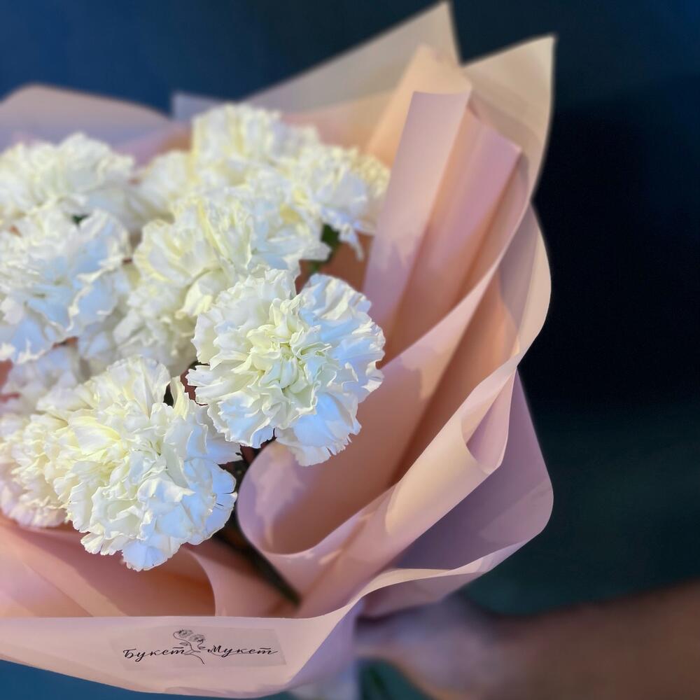Диантус белый – 11 шт.Пленка дизайнерская – 2 шт.Лента атласная – 1 шт.
