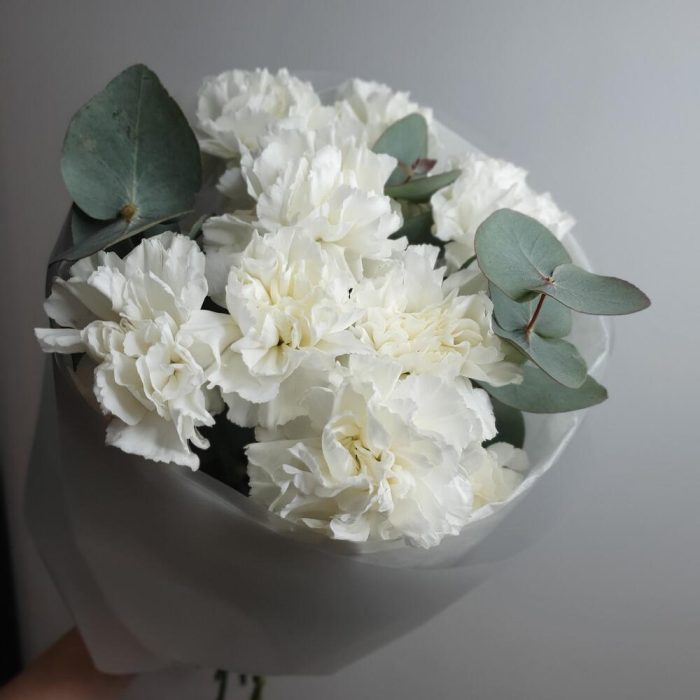 Белоснежные диантусы с эвкалиптом
