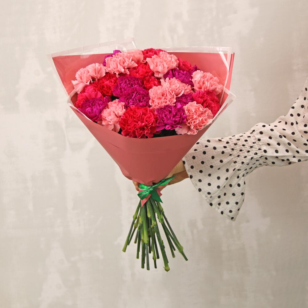 Букет из 25 диантусов (гвоздик) микс в стильной упаковке