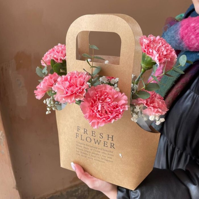 Цвет гвоздик может отличаться от фотоРекомендации по уходу:- цветы находятся во флористической губке, которую необходимо поливать 1 раз в 2-3 дня;- тонкой струёй воды в центре композиции, не попадая на цветы;- держать вдали от отопительных приборов и кондиционеров.