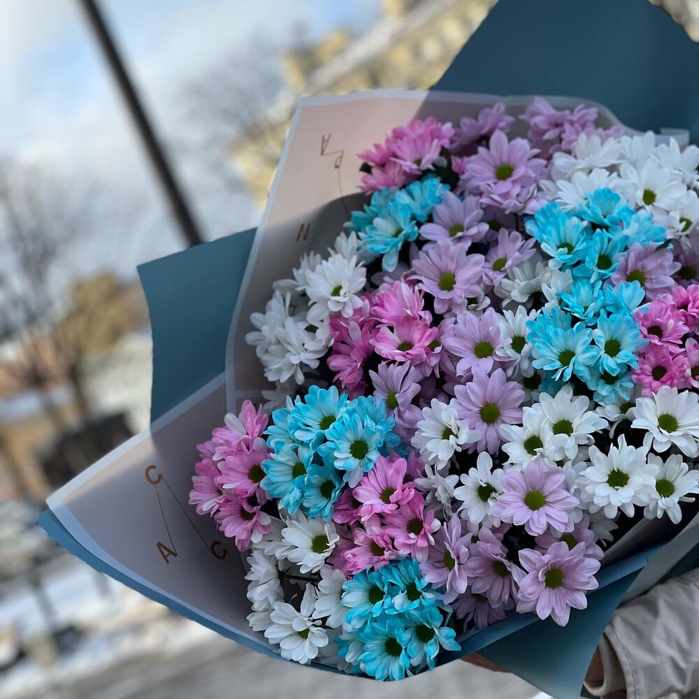 Хризантема кустовая – 19 шт.Упаковка дизайнерская – 2 шт.Лента – 1 шт.
