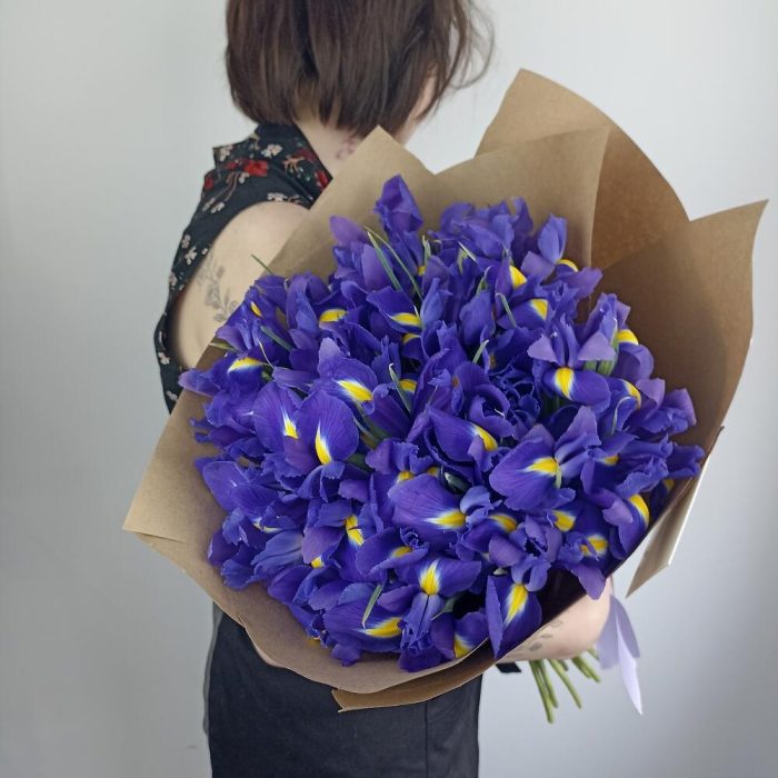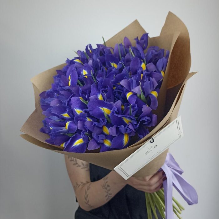 Букет из 29 ирисов с открыткой