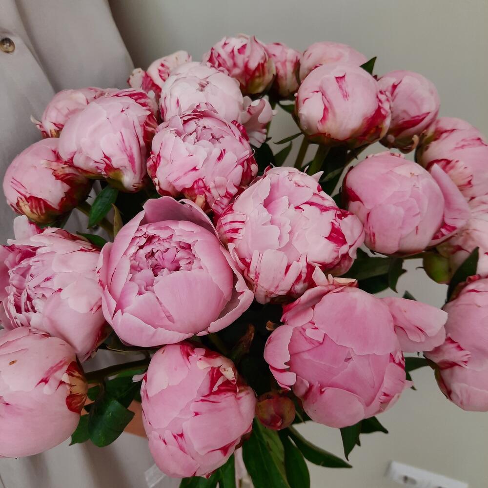 Пион Сара Бернар – 21 шт.Лента атласная – 1 шт.