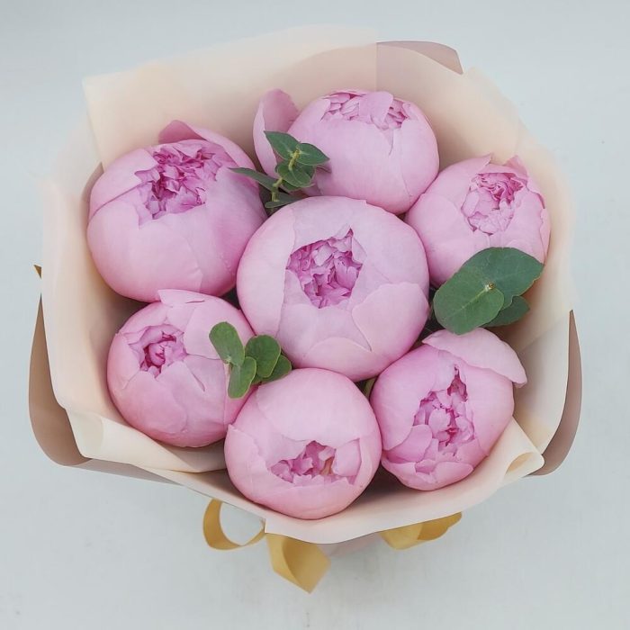 7 пионов с эвкалиптом