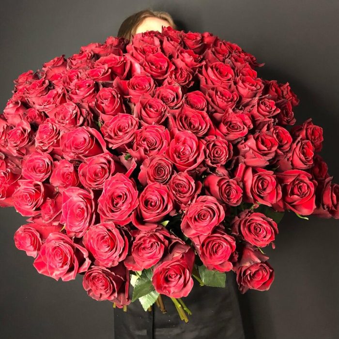 Роза Эквадор 60 см – 101 шт.Лента атласная – 3 шт.