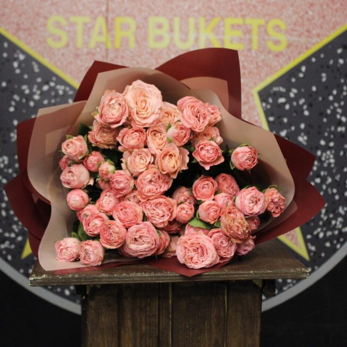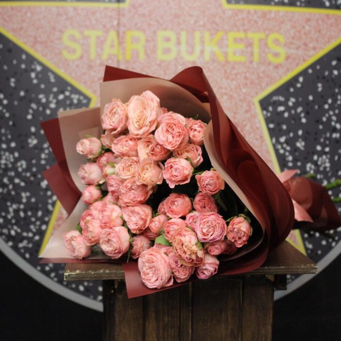 Роза мадам бомбастик – 11 шт.Пленка матовая – 3 шт.Лента атласная – 1 шт.