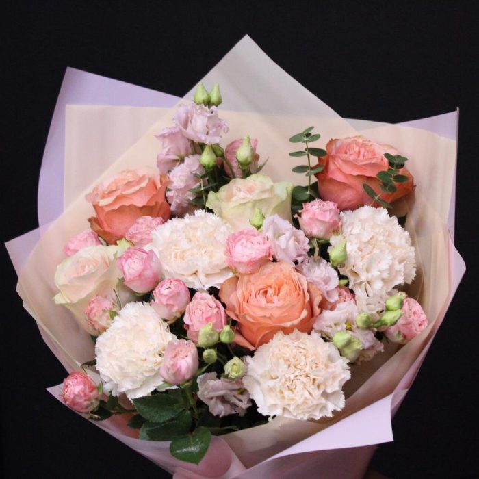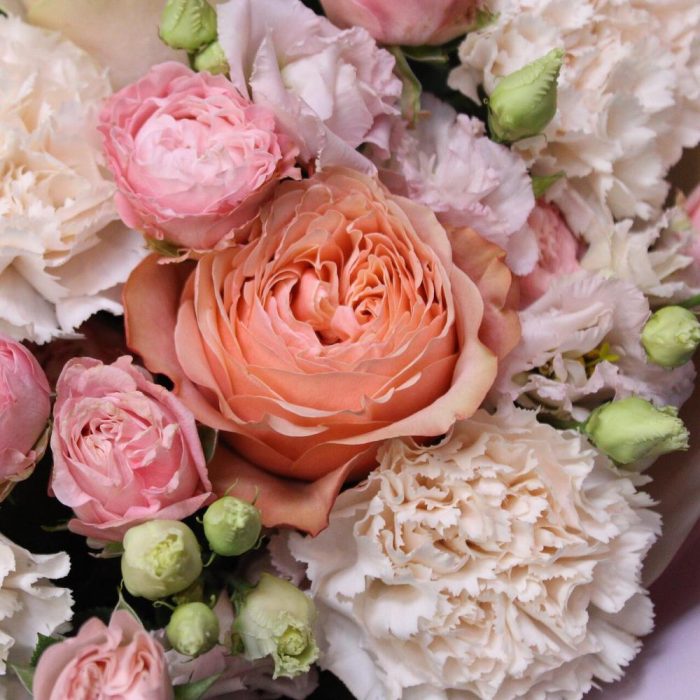 Категорий: Гвоздики, Кустовые розы, Лизиантусы, Пионовидные розы, Розы