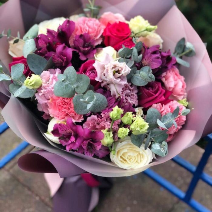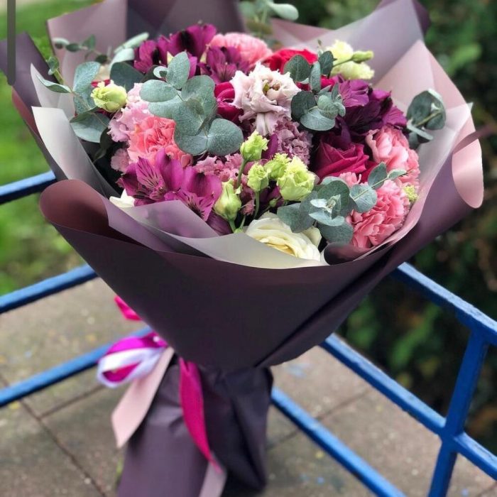 Готовый букет может немного отличаться от образца на фотографии, ведь каждая композиция уникальна. Наши флористы тщательно подходят к подбору цветов и прикладывают все усилия для того, чтобы цветовая гамма и форма букета максимально соответствовали образцу.