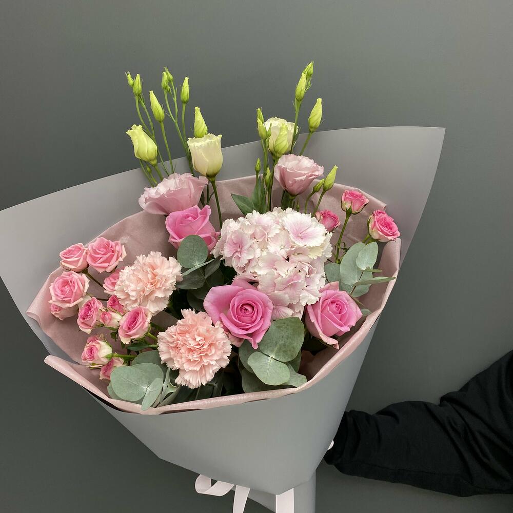 Альстромерии, Кустовые розы, Лизиантусы, Пионовидные розы, Розы, Ромашки
