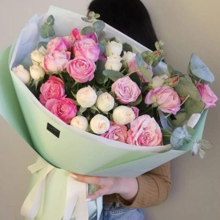 Гвоздики, Кустовые розы, Пионовидные розы, Розы