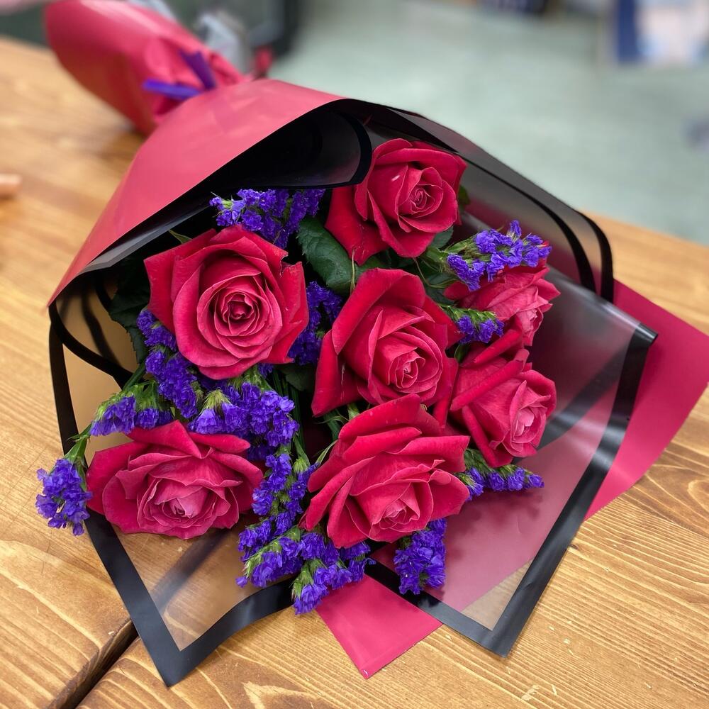 Роза – 7 шт.Статица – 2 шт.Упаковка – 2 шт.Лента – 1 шт.
