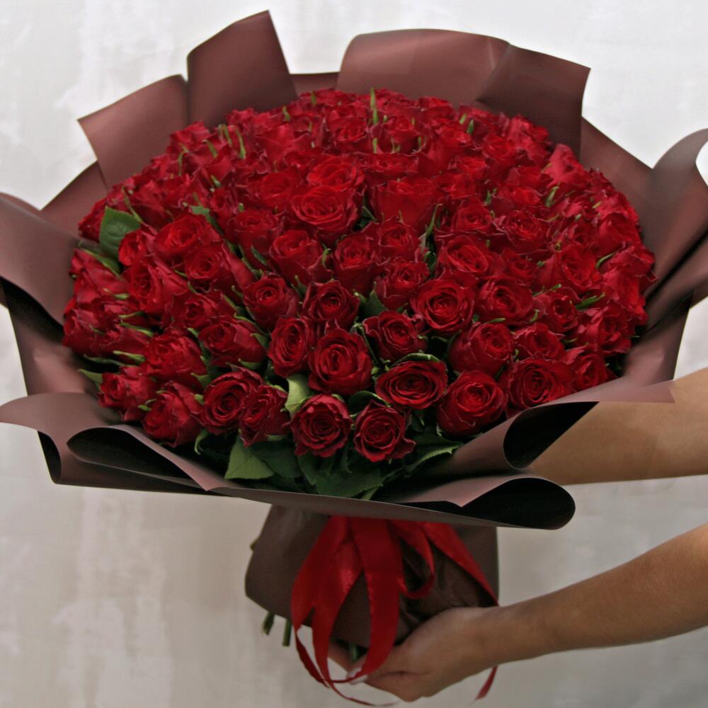Букет из 101 красной розы 35-40 см (Кения) в стильной упаковке