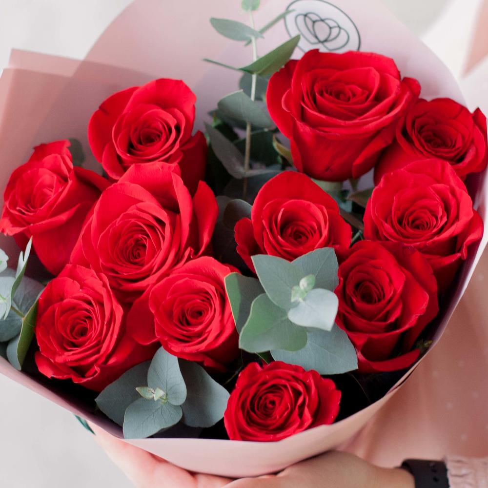 Эвкалипт – 3 шт.роза эквадор 50 см freedom красная – 11 шт.