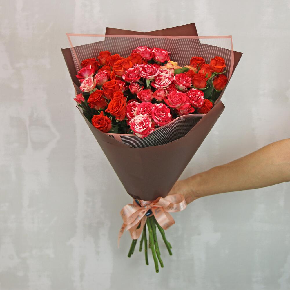роза кустовая кения – 11 шт.Пленка – 2 шт.Лента – 1 шт.