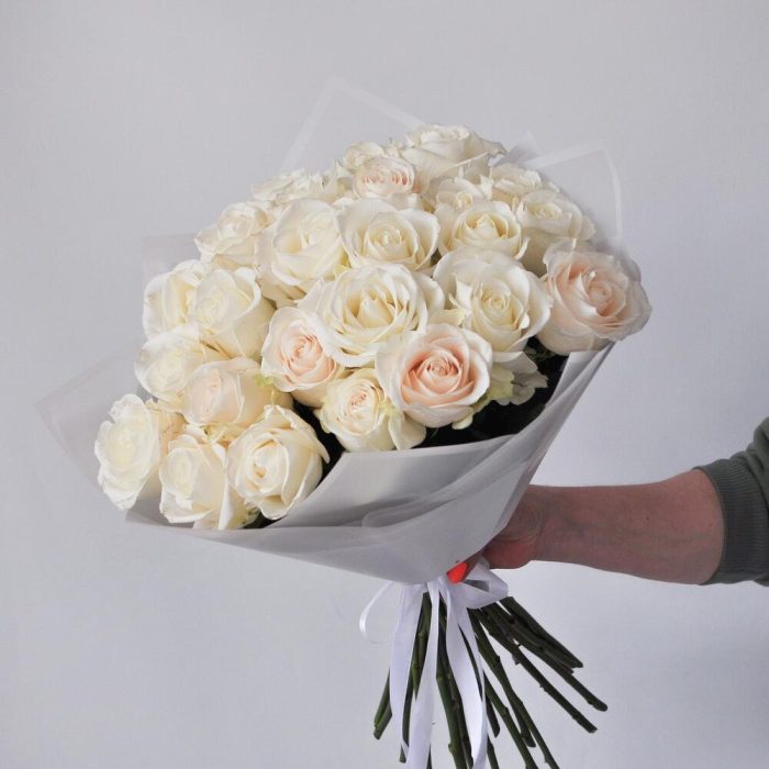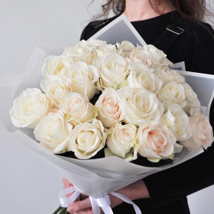 Букет из 25 белых высоких розы