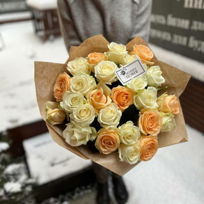 Букет из 25 роз в крафтовой упаковке “Антарктика”