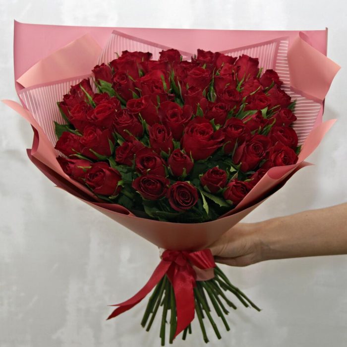 Букет из 51 красной розы 40 см (Кения)