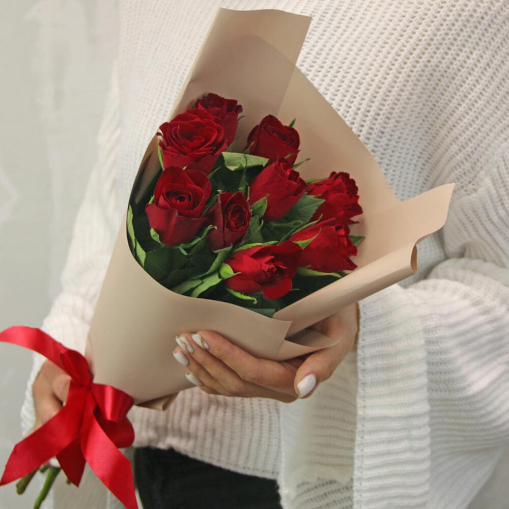 Букет из 9 красных роз 35-40 см (Кения) в стильной упаковке