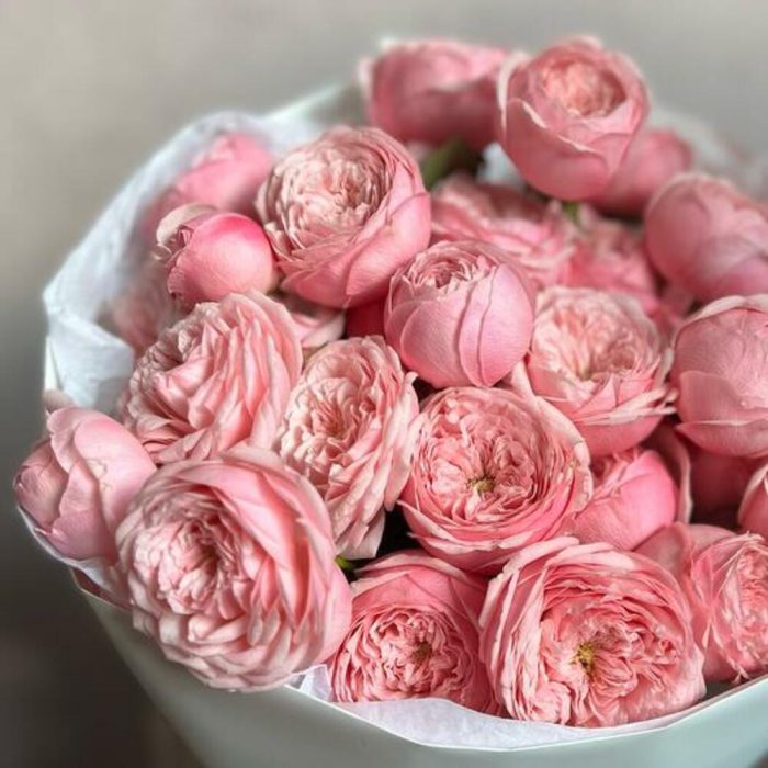Кустовая пионовидная роза – 9 шт.декоративная упаковка – 1 шт.Атласная лента – 1 шт.