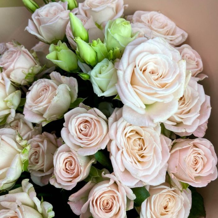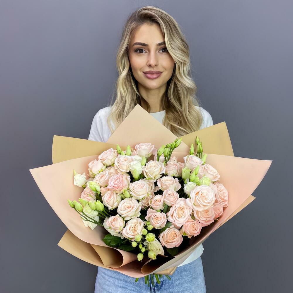 Гвоздики, Кустовые розы, Лизиантусы, Пионовидные розы, Розы