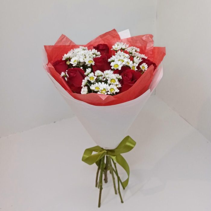 Букет из роз красных и Сантини