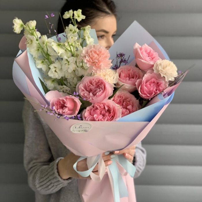 Гвоздики, Кустовые розы, Пионовидные розы, Розы