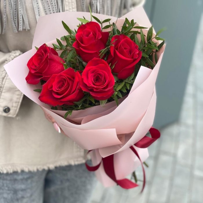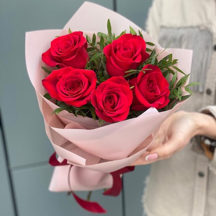 Метки: 5 роз, Красные розы, от 1000 до 2000 руб, Роза Роза 40 см
