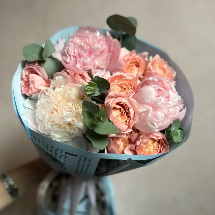 Букет с пионами и эвкалиптом