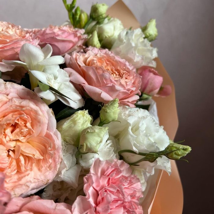 Категорий: Гвоздики, Кустовые розы, Лизиантусы, Пионовидные розы, Розы
