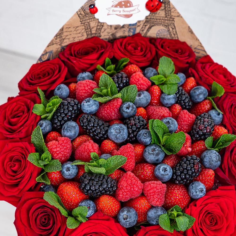 ягоды – 1000 гр.Роза – 13 шт.