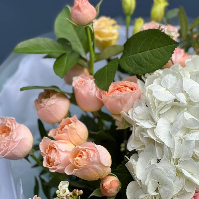 Категорий: Гортензии, Лизиантусы, Пионовидные розы, Розы, Хризантемы, Хризантемы кустовые, Эвкалипт, Эустома