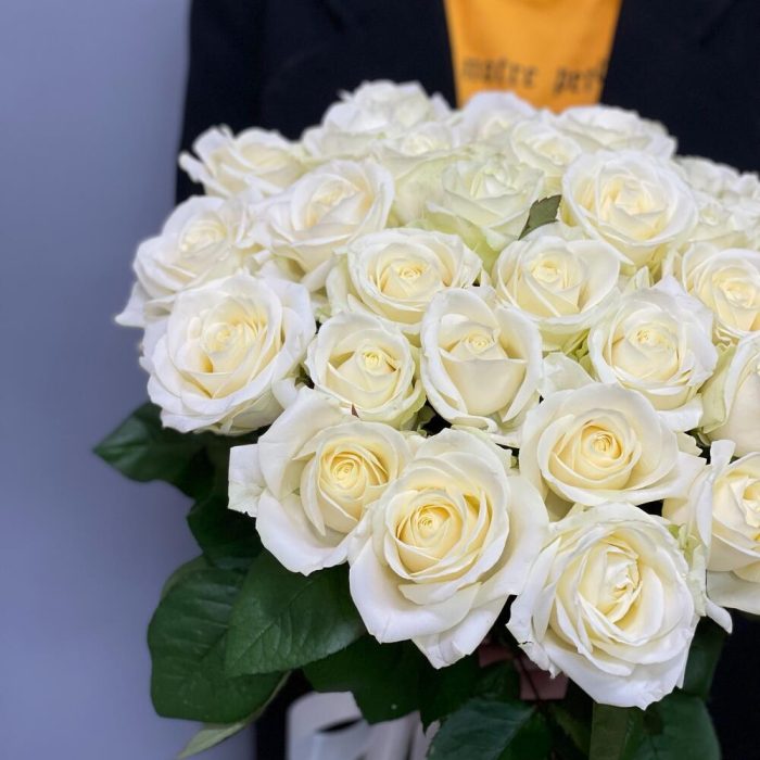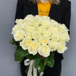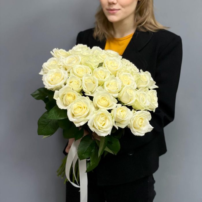 Элегантный классический букет белоснежных роз порадует дорогого Вам человека!