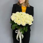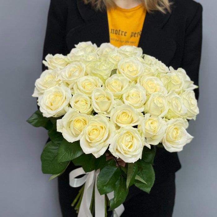 Лента атласная – 1 шт.Роза белая – 35 шт.