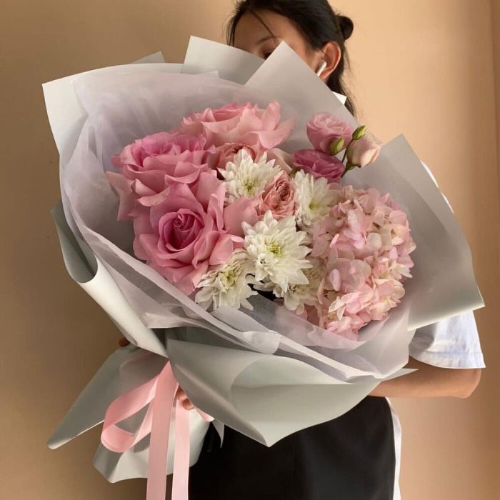 Гвоздики, Кустовые розы, Лизиантусы, Пионовидные розы, Розы
