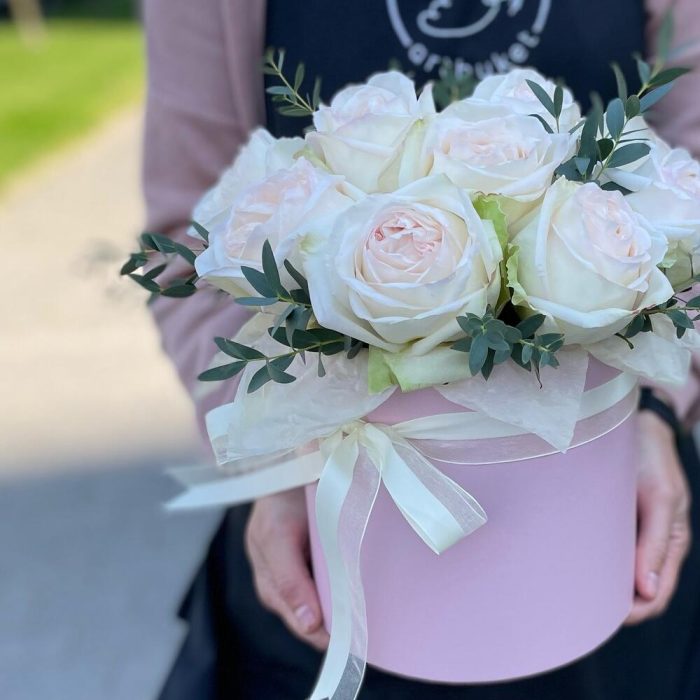 “Атлас☁️” – цветочная композиция с зефиром в деревянном ящике