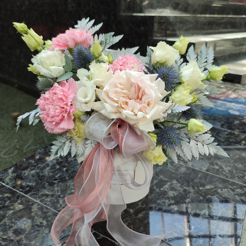 “В твоих глазах”: нежная шляпная коробка с французскими розами