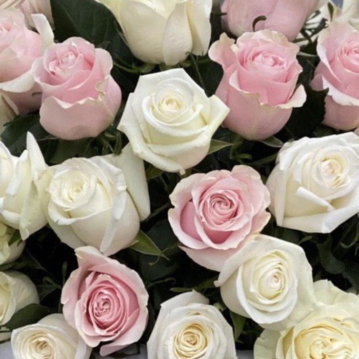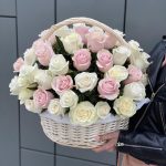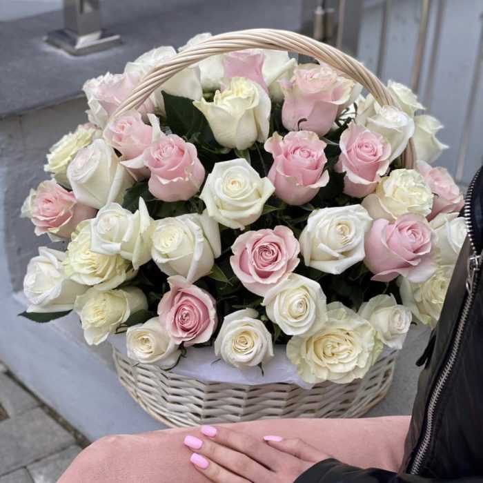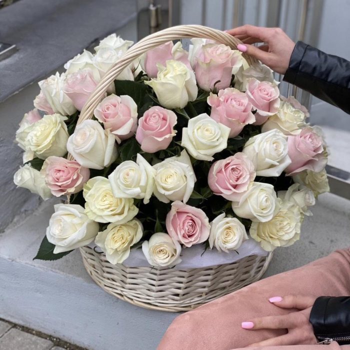 Корзина из 65 белых и розовых роз!